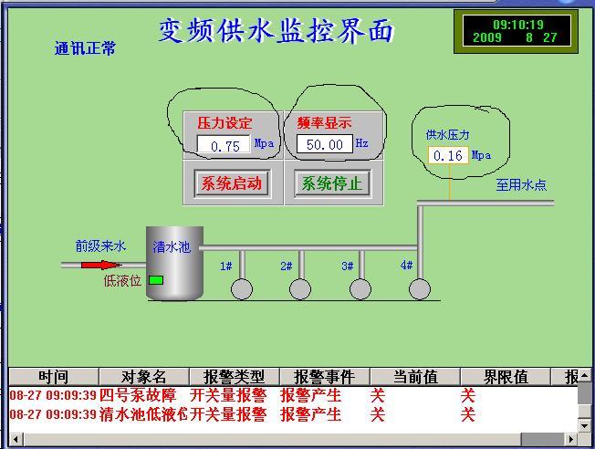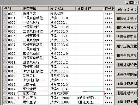 我想在觸摸屏上顯示: 壓力設定( VD0 )    供水壓力 ( VD4 )    供水頻率 ( VD8 )