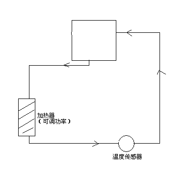 油在如上一個回路中流動(流量是可設置的,實際應用中可能為不同的值),通過一個電加熱器(可調功率)加熱,流出的管路上有個溫度計,希望這個管路溫度維持在設定值(30~70攝氏度之間某個設定值。)
